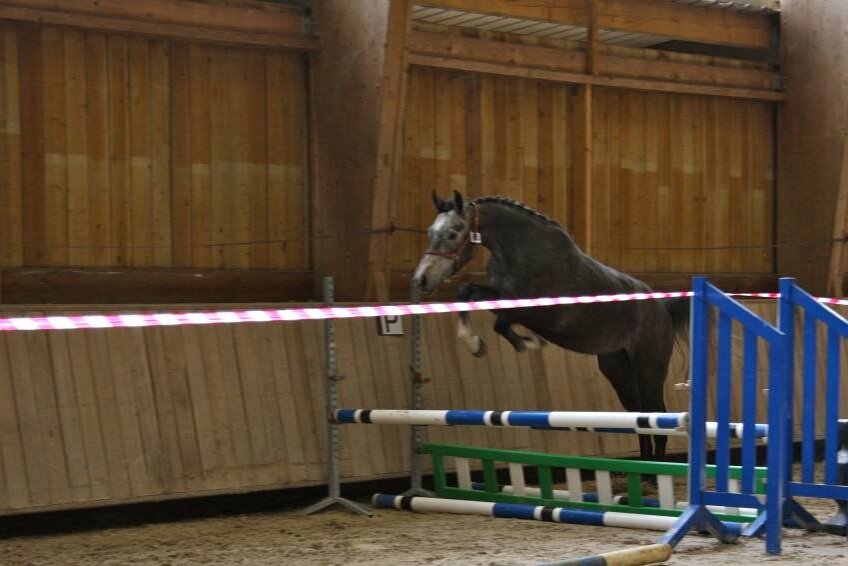 On retrouve chez Azara le chic de sa maman, sa tête expressive, et le si bon galop d’Eurocommerce Berlin. Elle se montre très facile sous la selle et à peine débourée, elle enchaine déjà, avec beaucoup d’aisance, un petit parcours. Avec une bonne bouche, une très belle locomotion, un super équilibre et une gentillesse à toute épreuve. Elle a fait l’unanimité des cavaliers du haras tant pour son look que pour sa générosité.
