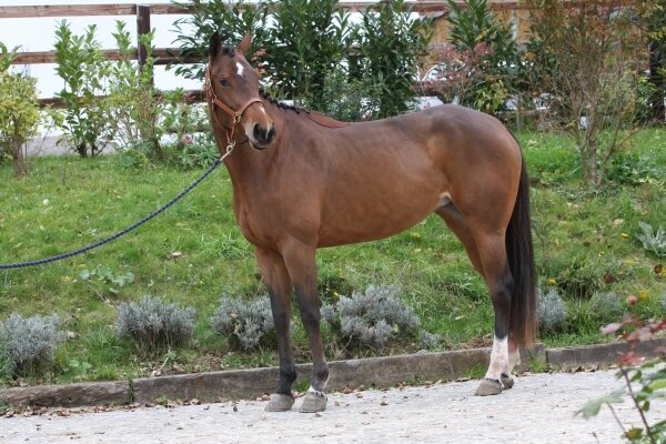 - Absolutely Gravelotte par Clinton I, femelle, alezane brûlée. Elle termine avec la qualification «Très Bonne» à 4 ans lors de la finale de Fontainebleau du CCL et obtient un ICC de 146 après avoir totalisé de beaux classements jusqu’en CCI 3* sous la selle d’Olivier Dortet. Elle est ensuite mise à l’élevage par son cavalier pour son propre compte et est à l’origine d’une très belle production.