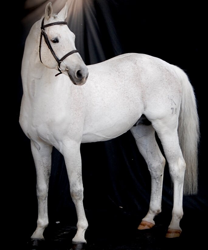 Splendide, sport, avec beaucoup de distinction et un sens inné de l'obstacle, il signe très fort ses produits en leur transmettant sa tête arabisée, son exceptionnel passage de dos et son caractère en or. Il apportera également son sang et sa souplesse à vos poulinières.